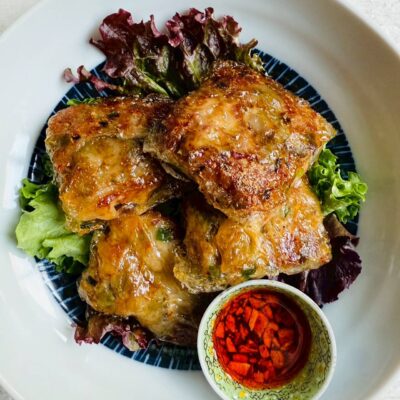 生春巻きの皮で蒸し焼きにした珍しい餃子です