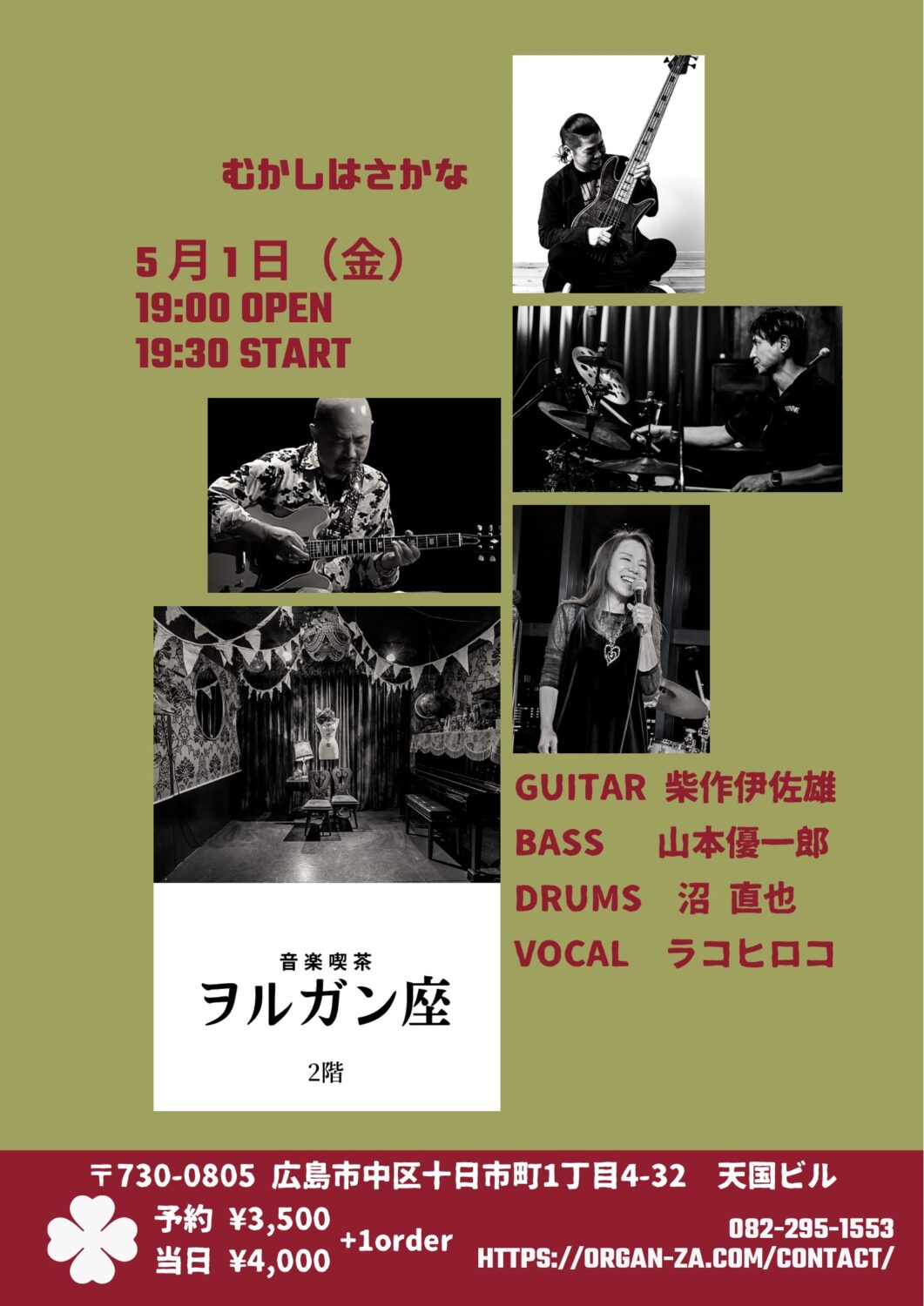 ご予約は、ヲルガン座へのメール【organzainfo@gmail.com】にてお願いします。その際、お名前と人数、お電話番号をおねがいします。